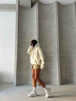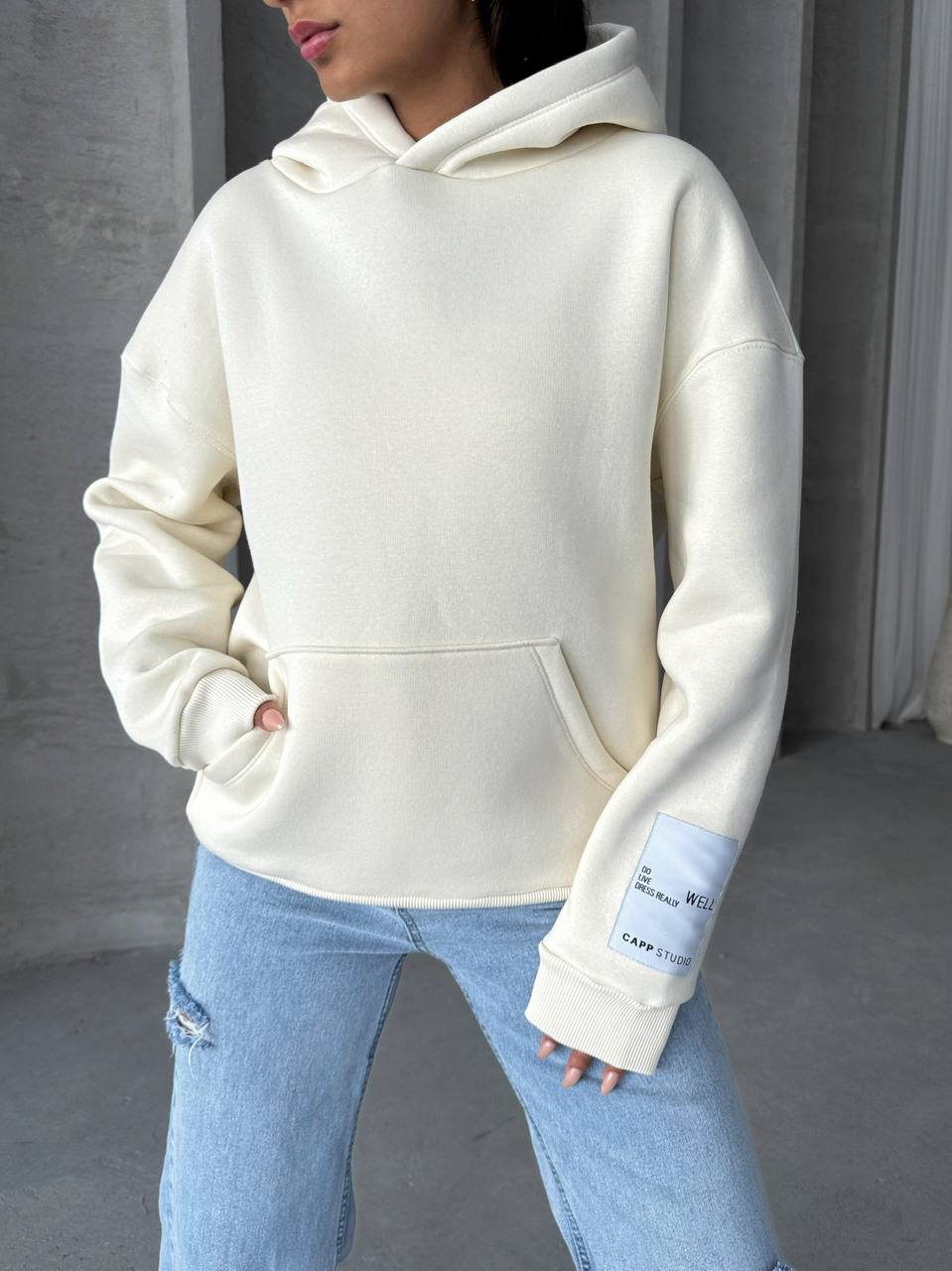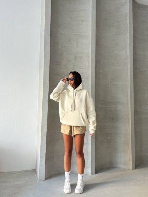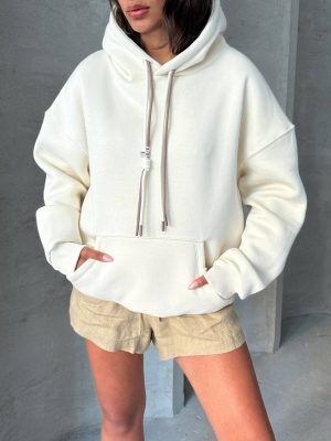 Das Hoodie-Design umfasst eine geräumige Kängurutasche vorne sowie eine bequeme Kapuze mit Kordelzug, die zusätzlichen Schutz vor Wind und Wetter bietet. Die langen Ärmel sind mit elastischen Bündchen versehen, die für eine gute Passform sorgen und das Eindringen von Kälte verhindern