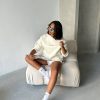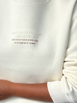 Dieser elegante Pullover kombiniert minimalistisches Design mit höchstem Tragekomfort. In dezentem cremefarbenen-Ton gehalten, präsentiert er auf der Vorderseite den Schriftzug "Boutique de Penture," der einen Hauch von Luxus und Exklusivität vermittelt.