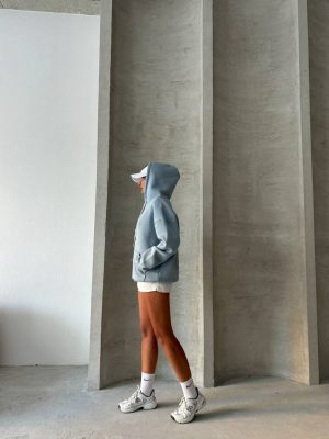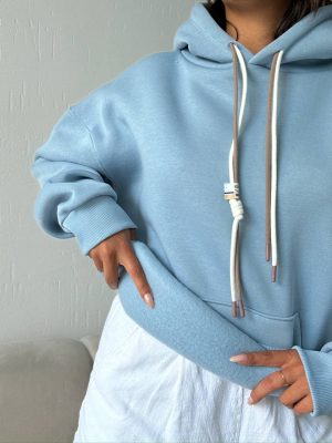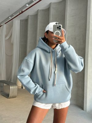 Das Hoodie-Design umfasst eine geräumige Kängurutasche vorne sowie eine bequeme Kapuze mit Kordelzug, die zusätzlichen Schutz vor Wind und Wetter bietet. Die langen Ärmel sind mit elastischen Bündchen versehen, die für eine gute Passform sorgen und das Eindringen von Kälte verhindern