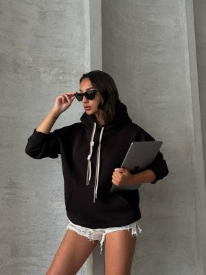 Das Hoodie-Design umfasst eine geräumige Kängurutasche vorne sowie eine bequeme Kapuze mit Kordelzug, die zusätzlichen Schutz vor Wind und Wetter bietet. Die langen Ärmel sind mit elastischen Bündchen versehen, die für eine gute Passform sorgen und das Eindringen von Kälte verhindern