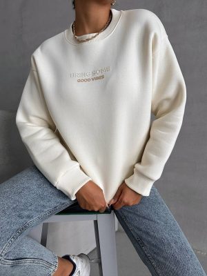 Stylischer Sweatshirt-Pullover in Creme Weiß