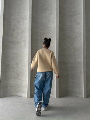 Dieser zarte beigefarbene Pullover mit seinem schlichten, aber dennoch auffälligen Design ist die perfekte Wahl für alle, die Wert auf Stil, Komfort und Qualität legen. Egal ob für den Alltag, gemütliche Stunden zu Hause oder als modisches Statement-Piece