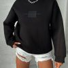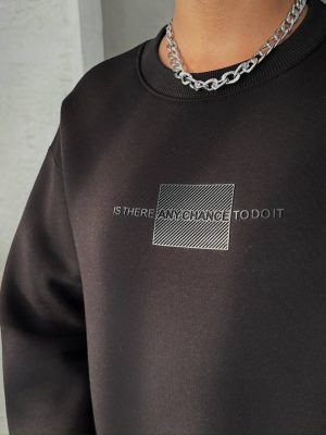 Dieser elegante Pullover in einem tiefen Schwarzton überzeugt durch seine schlichte Eleganz und den dezenten Schriftzug "IS THERE ANY CHANCE TO DO IT" auf der Vorderseite.