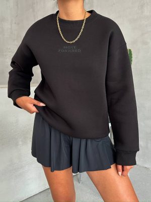 Dieser elegante Pullover in tiefen Schwarz trägt den inspirierenden „MOVE FORWARD“ Schriftzug und ist der perfekte Begleiter für deinen aktiven Alltag.