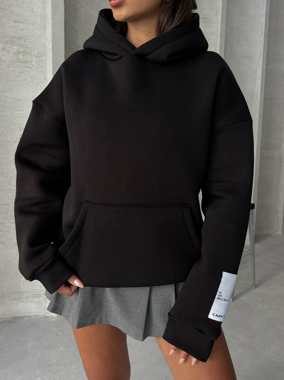 Ausgestattet mit einer geräumigen Kängurutasche und einer großzügigen Kapuze mit Kordelzug, vereint dieser Hoodie Komfort und Funktionalität.
