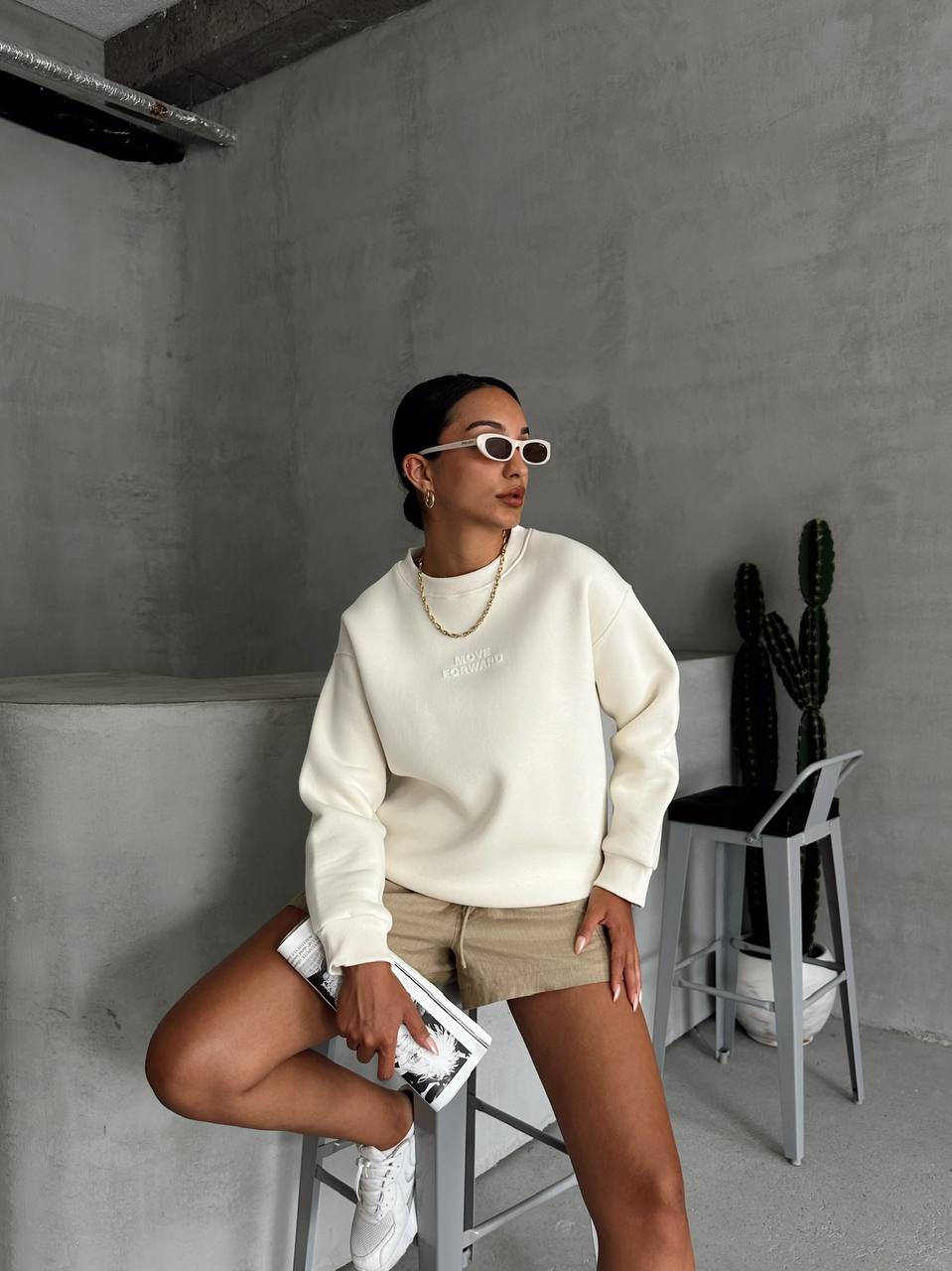 Oversized-Hoodie in Creme Weiß