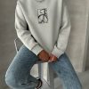 Der oversized Schnitt sorgt für eine bequeme Passform, während der Rundhalsausschnitt und die gerippten Bündchen das klassische Design abrunden.