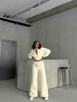 Chic und Komfort in Einem: Zweiteiliges Lounge-Set in Cremeweiß
