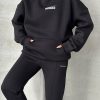 Dieses stilvolle Set in Schwarz-Ton ist die perfekte Kombination aus Komfort und modischem Chic. Es besteht aus einem Kapuzenpullover und einer passenden Jogginghose, die zusammen einen harmonischen und bequemen Look ergeben. Ideal für den Alltag oder entspannte Freizeitaktivitäten.