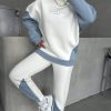 Dieses stylische und bequeme Set besteht aus einem Sweatshirt und einer Jogginghose, die perfekt aufeinander abgestimmt sind. Das Set ist zweifarbig gestaltet, wobei das Oberteil und die Hose in Weiß gehalten sind und mit kontrastierenden hellblauen Akzenten versehen sind.