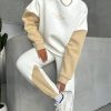 Dieses stylische und bequeme Set besteht aus einem Sweatshirt und einer Jogginghose, die perfekt aufeinander abgestimmt sind. Das Set ist zweifarbig gestaltet, wobei das Oberteil und die Hose in Weiß gehalten sind und mit kontrastierenden beigen Akzenten versehen sind.