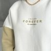 Auf der Brust befindet sich ein dezenter Schriftzug in Beige mit der Aufschrift "I will be FOREVER my own hero".