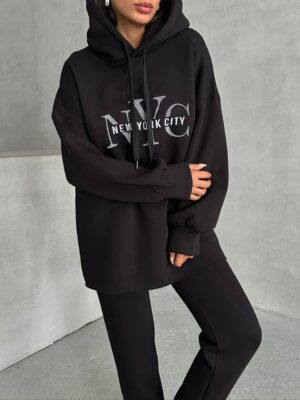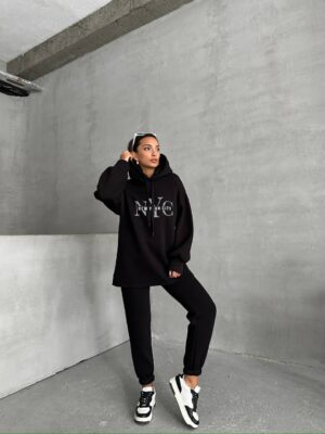 Tauche ein in den urbanen Stil mit unserem gemütlichen NYC Lounge-Set. Dieses Set aus einem weichen Hoodie und bequemen Jogginghosen kombiniert lässige Eleganz mit urbanem Flair. Der Hoodie mit dem markanten "New York City"-Logo gibt deinem Outfit einen Hauch von Metropolen-Feeling und passt perfekt zu den cleanen Linien der Jogginghose. Die elastischen Bündchen und das weiche Material garantieren Komfort, während das minimalistische Design in klassischem Schwarz zu einem zeitlosen Klassiker wird. Kombiniere es mit Sneakers und einer Cap, um deinen Street-Look zu perfektionieren.