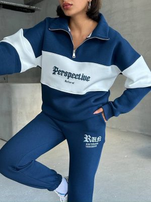 Dieses sportlich-elegante Set in tiefem Marineblau mit inspirierenden Schriftzug "Perspective Natural" auf der Brust ist die perfekte Wahl für alle, die Wert auf Komfort, Stil und Qualität legen.