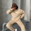 Das Set in einem dezenten Beige gehalten besteht aus einem bequemen Sweatshirt und einer passenden Jogginghose und ist perfekt für entspannte Tage zu Hause oder aktive Stunden unterwegs.