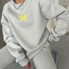 Das Set in einem dezenten Grau gehalten besteht aus einem bequemen Sweatshirt und einer passenden Jogginghose und ist perfekt für entspannte Tage zu Hause oder aktive Stunden unterwegs.